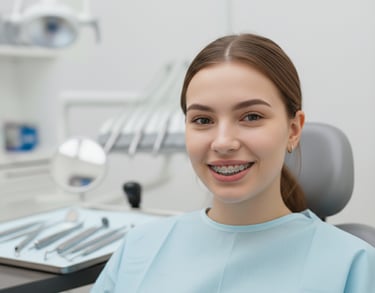 Corrección de la posición de los dientes y mordida mediante brackets metálicos, estéticos o alineadores transparentes. Ideal para mejorar la funcionalidad y la estética.