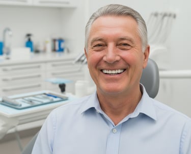 Restauración de piezas dentales con coronas, puentes o dentaduras para recuperar la función masticatoria y la estética facial.